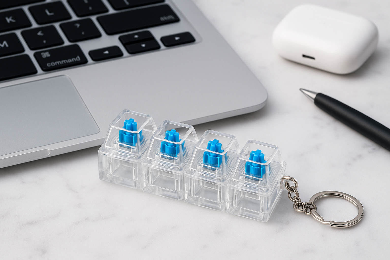 With every press, the key gives a clean, tactile click and a satisfying pulse of lightโjust bright enough to notice, fading smoothly like a tiny heartbeat so each tap feels deliberate and rewarding.